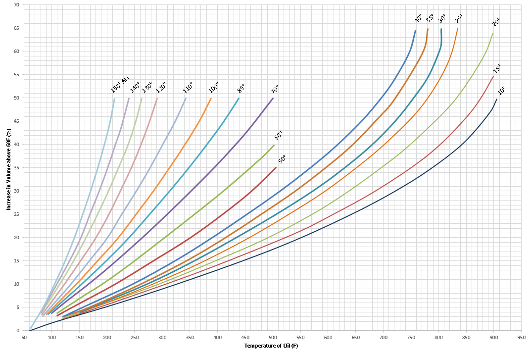 Degrees API is a scale used to measure the relative density of petroleum liquids and oil compared to water, as established by the American Petroleum Institute (API). The scale is calibrated in degrees API, with larger values coresponding to a lower specific gravity. Light crudes generally exceed 38 degrees API and heavy crudes are commonly labeled as all crudes with an API gravity of 22 degrees or below. Intermediate crudes fall in the range of 22 degrees to 38 degrees API gravity.