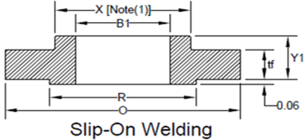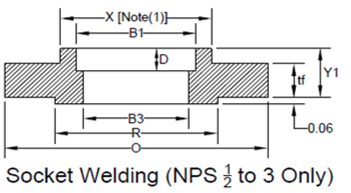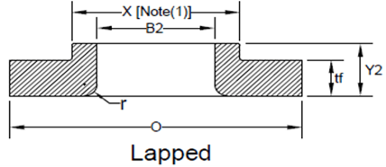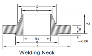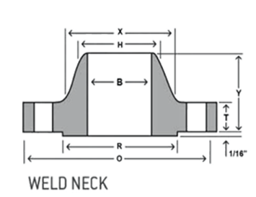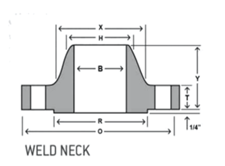 ASME | Flange Class | Nominal Pipe Size (NPS) | Outside Diameter Flange (O) | Min Thickness Flange (T) | Length Through Hub (Y) | Diameter of Hub (X) | Hub Diameter Top (A or H) | Raised Face Diameter (R) | Drilling-Daimeter Bolt Circle | Drilling- # Bolt Holes | Drilling- Diameter Bolt Hole | Diameter of Bolt | Length of Bolts- Stud Bolt Raised Face (.25 in) |